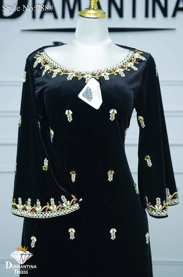 مخور "هندي إمراتي" حصري من ديامنتينا بخامة مخمل قطيفة فاخرة 510غ/م معروفة بلمستها الناعمة وثبات لونها العالي.