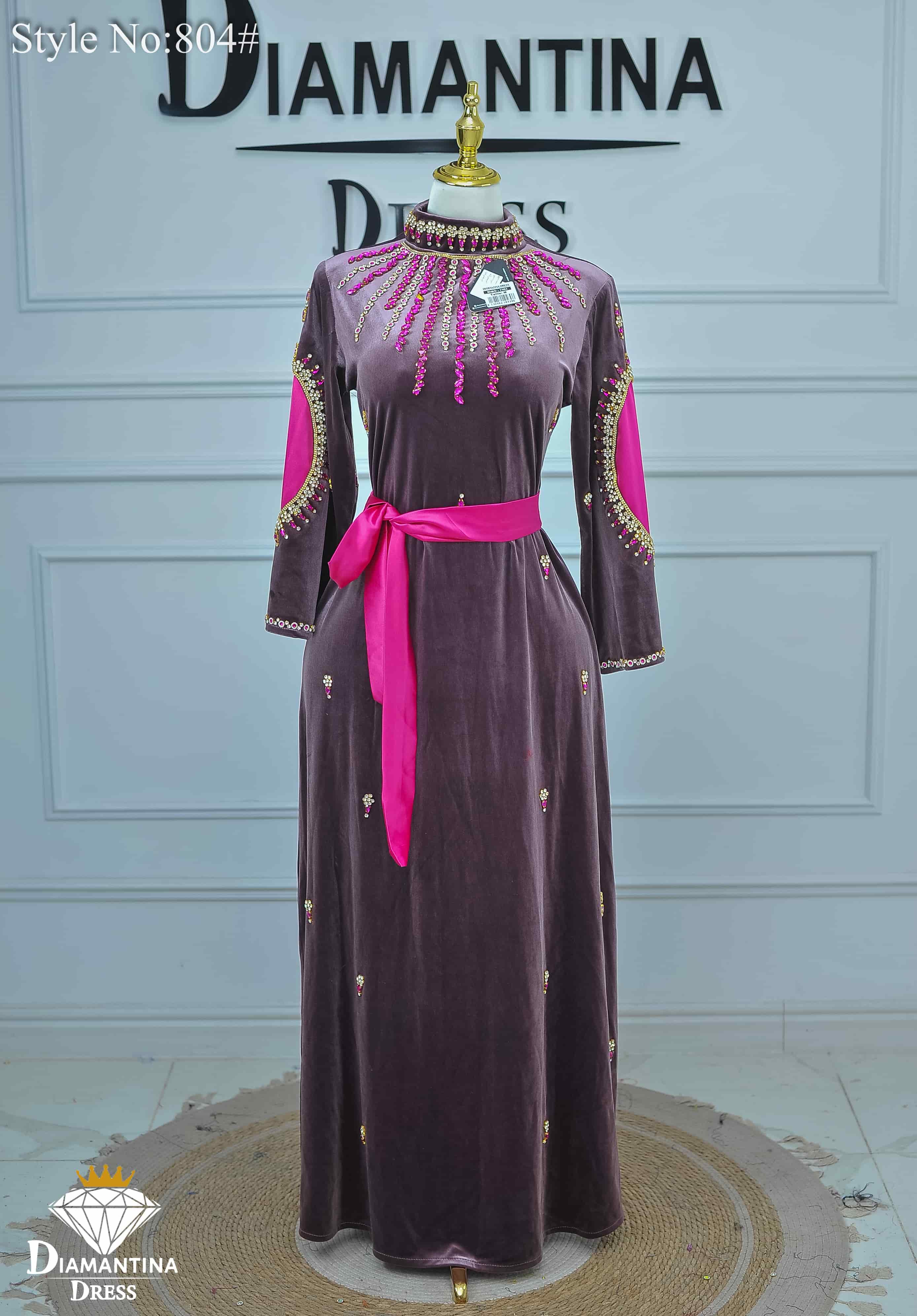 مخور خليجي رقم 804 حصري من ديامنتينا بخامة مخمل قطيفة فاخرة 510غ/م ممزوحة بساتان إيطالي معروفة بلمستها الناعمة وثبات لونها العالي.