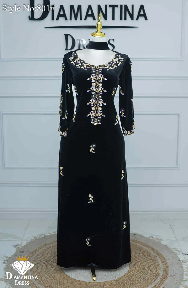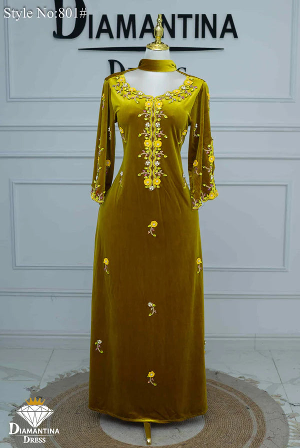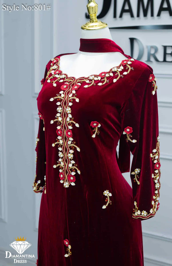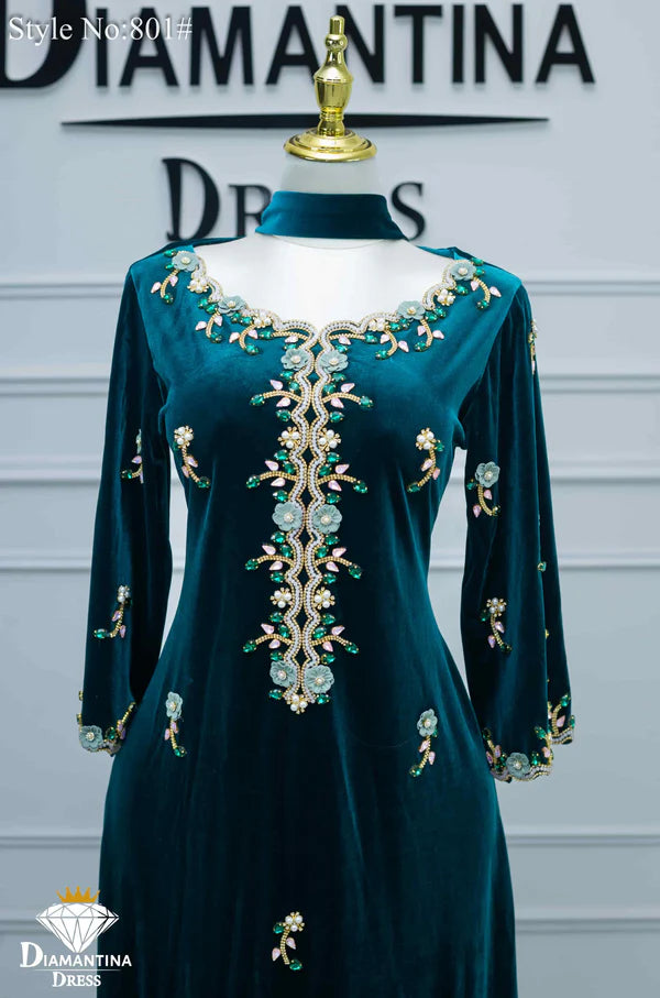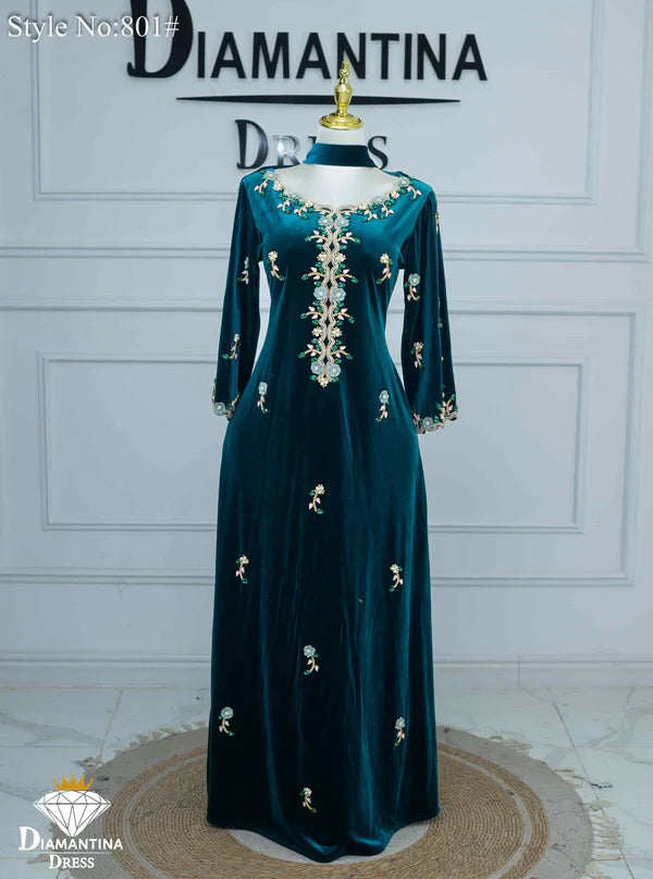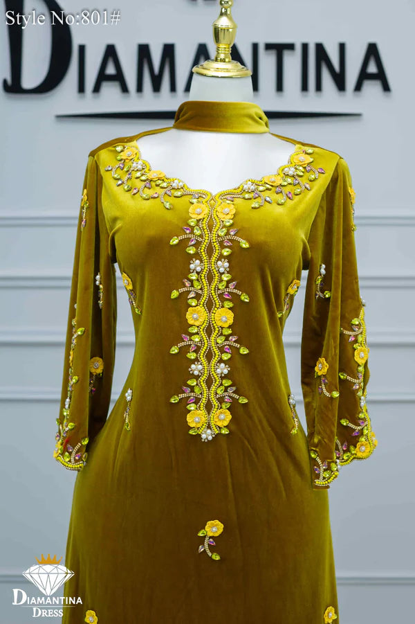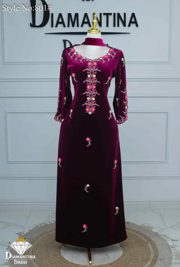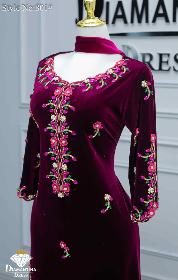 مخور "هندي إمراتي" رقم #801 حصري من ديامنتينا بخامة مخمل قطيفة فاخرة 510غ/م معروفة بلمستها الناعمة وثبات لونها العالي.